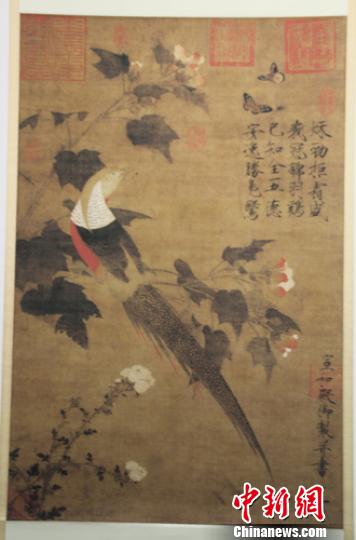 宋徽宗《芙蓉錦雞圖》復制品!±罘既A 攝