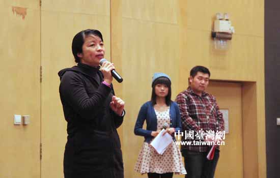 中國宋慶齡基金會聯絡部部長陳愛民在聯歡會上發言。(中國臺灣網 普燕 攝)