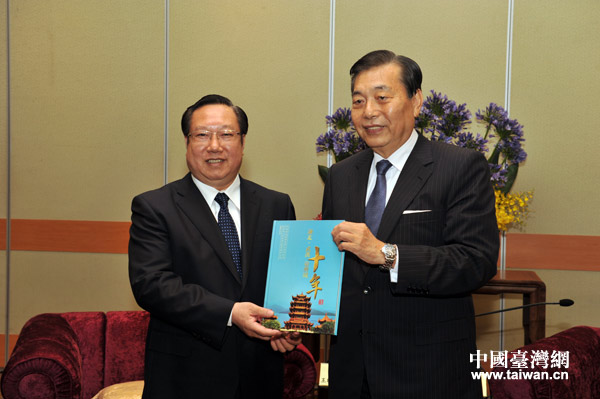 王曉東常務副省長會見臺灣貿易中心董事長王志剛。(中國臺灣網 陸勝 攝)