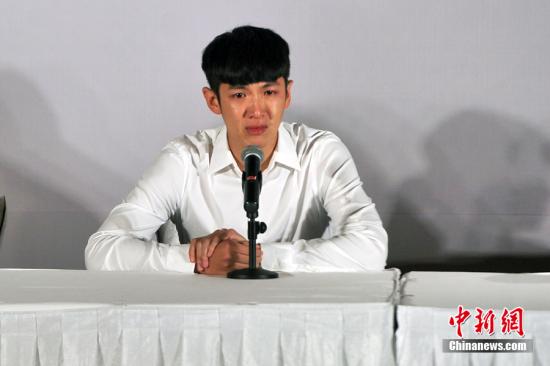 資料圖:8月29日下午,柯震東在父母、經(jīng)紀(jì)人柴智屏的陪伴下在北京舉辦道歉發(fā)布會(huì)。