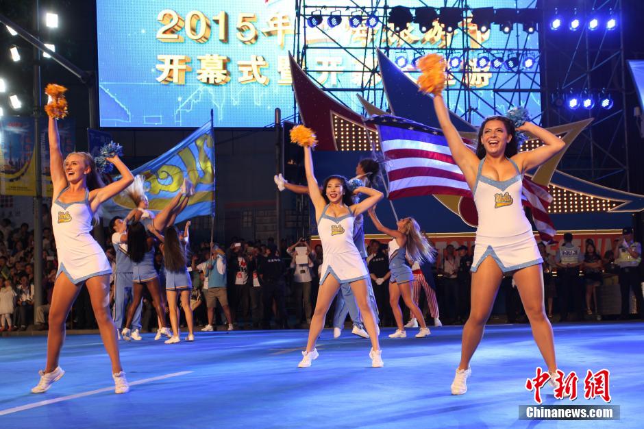 9月12日晚,上;春B妨鞴庖绮剩26屆上海旅游節拉開帷幕。來自19個國家和地區的23輛花車和31支表演方隊,圍繞著“海上絲路”這一主題,全方位地展示“一帶一路”沿線城市和地區的風采。圖為美國加州大學洛杉磯分校(UCLA)啦啦隊表演隊亮相。 張亨偉 攝