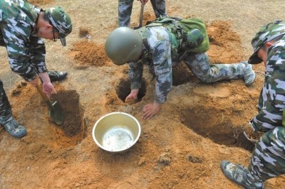 凌晨緊急集合,全副武裝負重50斤野外徒步20公里,躲避“敵人”雷達衛星偵察迅速隱蔽、路遇小波敵人騷擾迅速殲滅、35秒內戴上防毒面具穿越染毒地帶、搭建駐扎帳篷、挖坑埋灶做飯……