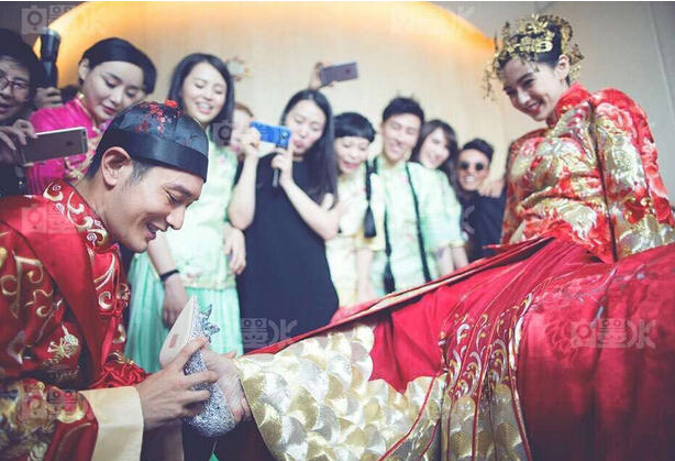 騰訊娛樂訊 近日,有網(wǎng)友曝光一組黃曉明Baby婚禮的照片,包括新郎化妝,迎娶新娘等小橋段。