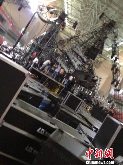 記者掌握的現場事故圖片顯示,事故現場一片凌亂,鋼鐵結構的多條大型燈架已砸下來,現場工作人員在忙著處置。知情人士披露,一人在現場死亡,其余十多人被送院處置。