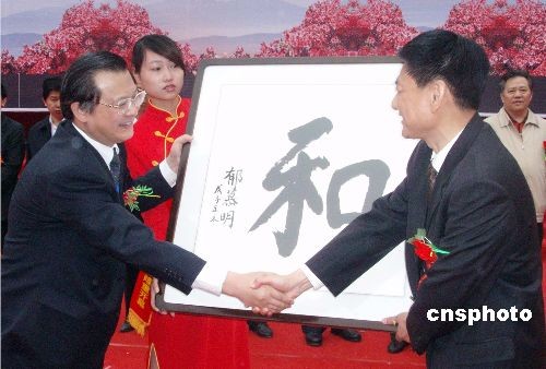 中新社永州四月二十八日電 (記者 傅煜)一幅由臺灣新黨主席郁慕明題寫、滿載臺灣同胞對和平深深期盼的“和”字,今日被贈給湖南陽明山,成為海峽兩岸血脈親情的又一見證。