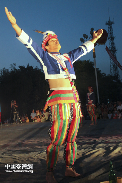臺(tái)灣少數(shù)民族文藝團(tuán)體表演舞蹈《祭靈》。(中國(guó)臺(tái)灣網(wǎng) 陳佳慧 攝)