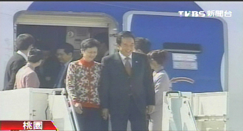 陳云林步出機(jī)艙門時(shí)笑容滿面。 來(lái)源:臺(tái)灣TVBS電視臺(tái)