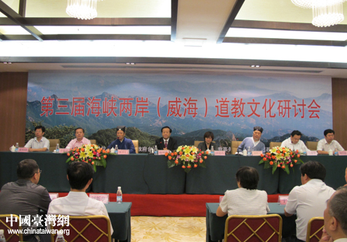 中國臺灣網9月19日文登消息 9月18日,第三屆海峽兩岸(威海)道教文化研討會開幕式及專題演講在文登市舉行。來自海峽兩岸的道教界人士齊聚一堂,圍繞道與自然、道教養生與身心健康、弘揚道教優秀文化促進社會健康發展等議題進行交流研討。威海市委副書記趙熙殿出席研討會并講話。國臺辦交流局處長田曉玲、山東省道教協會會長劉懷元專程來威海參會。臺灣正宗全真道教會理事長巫平仁先生率團來威,并展示了一套全真道教太極養生拳。