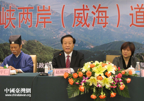 威海市委副書記趙熙殿(中)出席研討會并講話。(圖片來源:威海市臺辦)