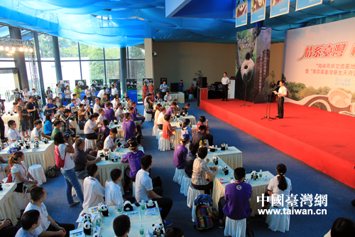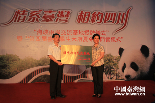 中國臺灣網(wǎng)8月8日成都消息 今日上午,“海峽兩岸交流基地”授牌儀式在成都大熊貓繁育基地正式舉行。中央臺辦、國臺辦副主任葉克冬,四川省委副書記柯尊平,四川省人民政府副省長黃彥蓉等出席。包括參加第四屆臺灣學生天府夏令營活動的川臺兩地師生在內(nèi),共130余人參加了授牌儀式。