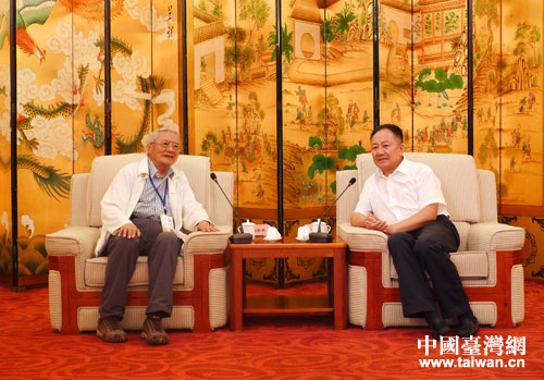 中國臺灣網8月19日西安消息 8月18日晚,陜西省委常委、省委統戰部部長陳強在西安會見了臺灣促進中國現代化學術研究基金會學術交流團翟宗泉一行。
