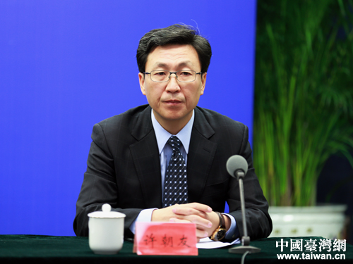 29日,兩岸企業家峰會組委會在北京舉行新聞發布會,組委會辦公室副主任、兩岸企業家峰會副秘書長、中國國際經濟交流中心交流部部長許朝友參加。(中國臺灣網王偉 攝)