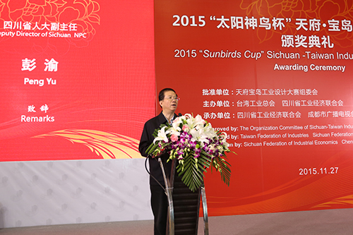 蔡練生在致辭中指出,“太陽神鳥杯”天府.寶島工業(yè)設(shè)計大賽已成為川臺兩地之間合作交流的一個重要平臺,促進了兩地科技產(chǎn)業(yè)的合作進步。他說,天府·寶島工業(yè)設(shè)計大賽舉辦五年來每年都有進步,期待大賽一年比一年辦得更好。他表示,臺灣工業(yè)總會將繼續(xù)致力于與四川方面共同推動兩地科技創(chuàng)新成果的轉(zhuǎn)化。