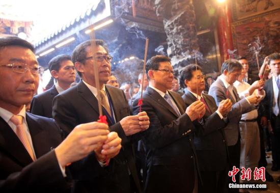 11月30日,海峽兩岸關(guān)系協(xié)會會長陳德銘率海協(xié)會交流團抵臺,隨即赴臺中大甲鎮(zhèn)瀾宮參訪。中新社記者 陳小愿 攝