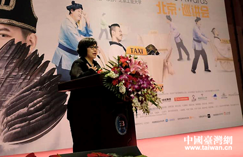 旺旺中時文化傳媒公司總經(jīng)理林淑黛代表主辦方預(yù)祝今年所有參賽同學都能拿出最好的創(chuàng)意,獲得好成績。(中國臺灣網(wǎng) 普燕 攝)