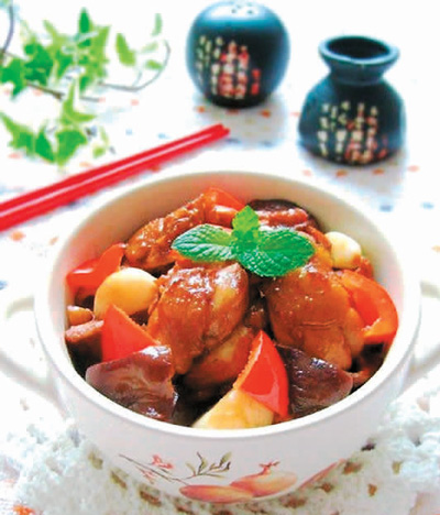 三杯雞發(fā)源于江西省,相傳與民族英雄文天祥有關(guān)。南宋末年,文天祥抗元被俘。一位江西老婆婆得知文天祥即將被殺,就帶了一只雞和一壺酒來獄中探望。在獄卒老鄉(xiāng)幫助下,老婆婆見到了文天祥。她把帶的雞切成塊,在瓦缽中倒上三杯米酒,并用小火煨制,隨后將這道菜獻給文天祥。獄卒回到老家江西寧都后,每逢文天祥祭日,必用這道菜祭奠他。后來,廚師將三杯酒改成一杯甜酒釀、一杯醬油、一杯豬油,并用江西寧都特產(chǎn)的寧都黃雞做原料,便成為如今知名的三杯雞。