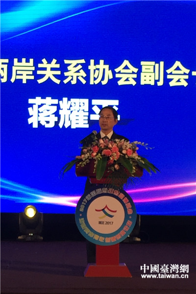 海峽兩岸關系協(xié)會副會長蔣耀平致辭。(中國臺灣網(wǎng) 王亞靜 攝)