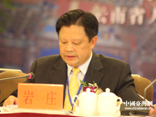 省臺(tái)辦主任、云南海峽兩岸交流促進(jìn)會(huì)會(huì)長巖莊作促進(jìn)會(huì)工作報(bào)告。圖片來源:云南臺(tái)辦