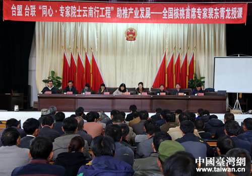 中國臺灣網11月30日華寧訊 11月28日,臺盟、臺聯“同心·專家院士云南行工程”在華寧縣青龍鎮舉辦核桃種植技術培訓。臺盟云南省委主委、云南省臺聯會長楊曉紅,臺盟云南省委、云南省臺聯秘書長何原文,臺盟中央社會服務部扶貧工作處調研員劉曉英以及玉溪市委統戰部、華寧縣、青龍鎮有關領導出席培訓班開班儀式。青龍鎮200余人參加培訓。