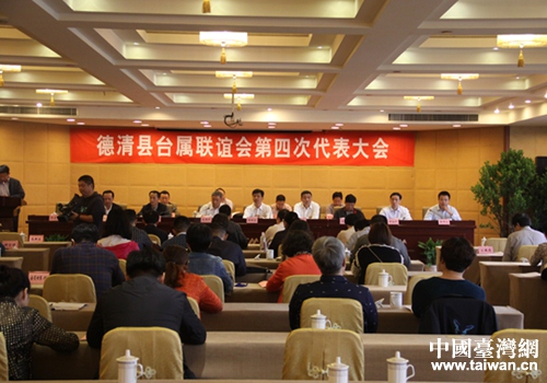 中國臺灣網10月18日德清訊 10月17日,德清縣臺屬聯誼會第四次代表大會順利召開,市臺辦副主任余文祥,縣委常委、統戰部長楊明連,縣人大常委會副主任孫政文,縣政協副主席王法弟應邀出席會議。原省臺辦副巡視員、省臺屬聯誼會副會長王洪興為大會致辭,省臺屬聯誼會秘書長王淼康、市臺屬聯誼會會長朱萬里專程到會指導。
