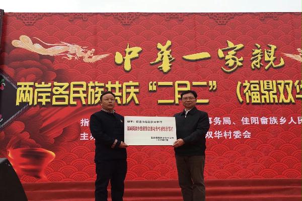 中華一家親·兩岸同胞在福建福鼎共慶二月二會親節。活動中,國家民委港澳臺辦分別為福鼎市佳陽鄉雙華村、太姥山鎮綠野山莊授予“海峽兩岸少數民族交流與合作基地示范點”牌匾。(圖片來源:國家民委網站)