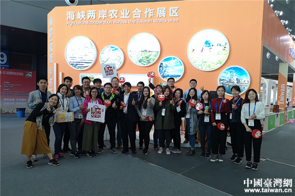 參展的16家島內企業在海峽兩岸農業合作展區合影,點贊農交會平臺。(中國臺灣網 郜利敏 攝)