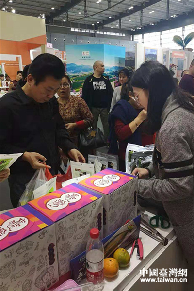 海峽兩岸農業合作展區現場,兩岸特色農產品吸引眾多參展觀眾參觀。(中國臺灣網 郜利敏 攝)