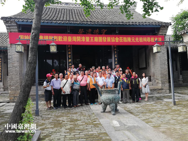 中國臺灣網6月26日固始訊 圣王恩威惠兩岸,何人不起故園情。6月23日,臺灣開漳圣王發展協會理事長李竹村帶領桃園彰化開漳圣王宮廟考察團一行43人來到陳元光出生地,祭拜圣王祖祠。