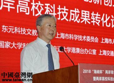 中國臺灣網7月9日上海訊 2018“海峽杯”兩岸青年創新創業周開幕式暨兩岸高校科技成果轉化論壇7月8日在上海交通大學隆重舉行。這是上海交通大學多年與臺灣交流的傳統活動,也是上海科技企業孵化器30周年的巡禮。海峽兩岸關系協會秘書長馬國樑,上海市政府臺灣事務辦公室主任李文輝,上海交通大學黨委常委、副校長王偉明,上海市科學技術委員會副巡視員劉勤,臺灣東元科技文教基金會副執行長蘇玉枝,亞洲企業孵化協會主席、臺灣中華創業育成協會理事長黃經堯等,以及來自臺灣、大陸暨香港二十余所高校的育成孵化機構、大學科技園的負責人和海峽兩岸三十余所高校的200余名師生出席了活動。上海交通大學港澳臺辦公室主任羅鵬主持了儀式。