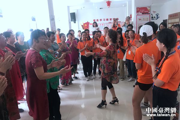 下午3時(shí),浩大的臺(tái)灣學(xué)子一行在工作人員的陪同下來(lái)到了鞍山市鐵東區(qū)富康社區(qū)參觀,人還未到,先聞其聲。學(xué)子們還未走到社區(qū)辦公大樓門口,在二樓彩排民樂(lè)、舞蹈的大叔大嬸兒們就已經(jīng)在向大家揮手呼喊。看見(jiàn)熱情如火的叔叔阿姨們,學(xué)子們開(kāi)始還有些羞澀,但在一番互動(dòng)交流之后,大家慢慢變得熱絡(luò)起來(lái),和叔叔阿姨們唱歌跳舞,感受著大陸特有的社區(qū)文化,聽(tīng)到社區(qū)工作人員對(duì)社區(qū)的講解后,更是感嘆工作人員對(duì)于社區(qū)管理的科學(xué)化和人性化。