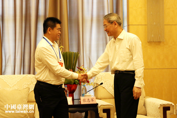 7月18日上午,全國人大常委會委員、海協(xié)會會長張志軍會見參加第三屆海峽兩岸青年東湖論壇的臺灣青年代表。(中國臺灣網(wǎng) 趙苗青 攝)