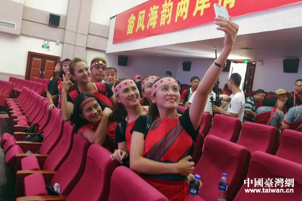 臺(tái)灣少數(shù)民族演出結(jié)束后自拍留念。(中國臺(tái)灣網(wǎng) 張露露 攝)