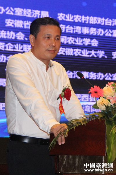 安徽省農(nóng)業(yè)委員會(huì)副主任陳衛(wèi)東發(fā)表致辭。(中國(guó)臺(tái)灣網(wǎng) 郜利敏 攝)