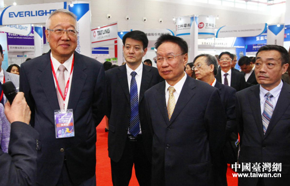 中國臺(tái)灣網(wǎng)10月30日馬鞍山訊 10月26日至29日,由安徽省臺(tái)辦、省經(jīng)信委、馬鞍山市政府共同主辦的2018第七屆海峽兩岸(馬鞍山)電子信息博覽會(huì)在馬鞍山市舉行,海峽兩岸關(guān)系協(xié)會(huì)副會(huì)長李亞飛、安徽省政協(xié)副主席牛立文、安徽省臺(tái)辦主任劉泉、馬鞍山市委書記張?jiān)婪濉ⅠR鞍山市人民政府市長左俊以及臺(tái)灣電電公會(huì)理事長郭臺(tái)強(qiáng)、臺(tái)灣工業(yè)總會(huì)副理事長林明儒等出席開幕式并巡館。