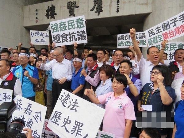 國民黨“立委”曾銘宗、費鴻泰、賴士葆29日發起絕食,抗議民進黨以霸道違法方式在“立法院”處理“前瞻基礎建設計劃第一期特別預算案”。吳敦義在中常會結束后率中常委及支持者近300人前往聲援。