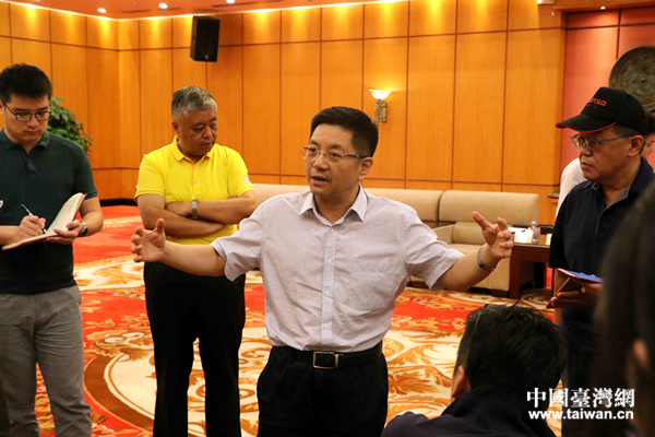 “海峽兩岸記者特區行”采訪團團長、國務院臺灣事務辦公室新聞局局長馬曉光接受兩岸記者采訪。(中國臺灣網 尹賽楠 攝)