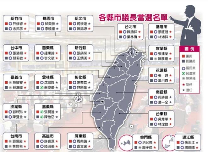 中國臺灣網12月26日訊 民進黨“九合一”選舉慘敗,各縣市正副議長選舉也兵敗如山倒。據臺灣《中國時報》報道,全臺正副議長選舉,國民黨籍囊括19席議長,無黨籍2席,執政的民進黨籍僅嘉義縣張明達勝選。從“六都”來看,國民黨更囊括5席議長大獲全勝,不僅臺南市、高雄市都翻盤,臺南市更由選前一刻宣布退黨的郭信良以無黨籍身份當選。報道稱,臺南市正副議長選舉,席次最多的民進黨落得慘敗收場即是明證,民進黨再放任派系惡斗,2020年恐痛失江山。