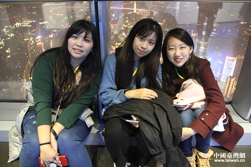 臺灣青年在上海中心大廈紀錄美好時刻。(中國臺灣網 王莉婷 攝)
