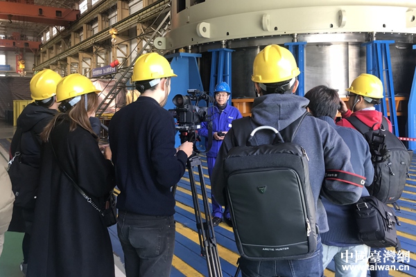 兩岸媒體人在哈爾濱電機(jī)廠采訪相關(guān)負(fù)責(zé)人。(中國臺灣網(wǎng) 張亞靜 攝)