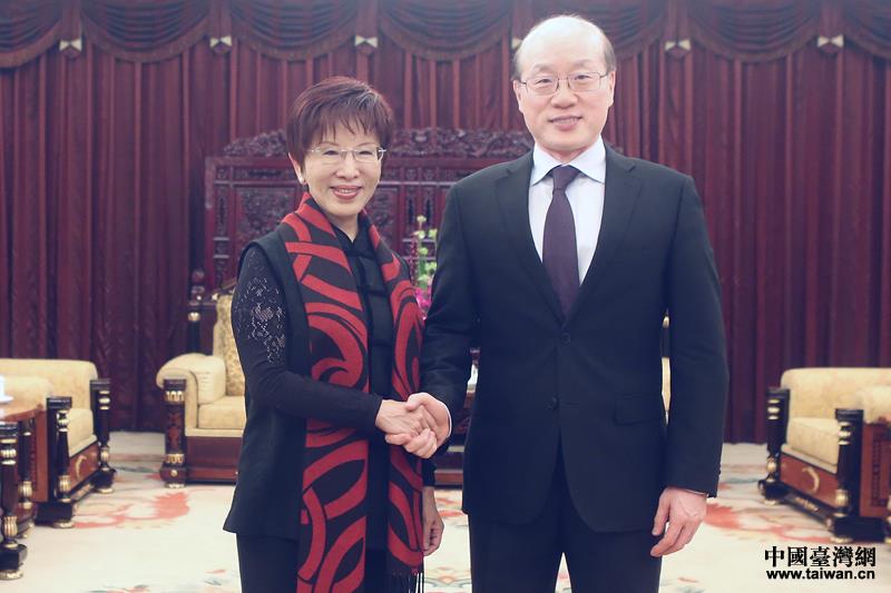 中共中央臺辦、國務(wù)院臺辦主任劉結(jié)一會(huì)見中國國民黨前主席洪秀柱。(中國臺灣網(wǎng) 扶海濤 攝)