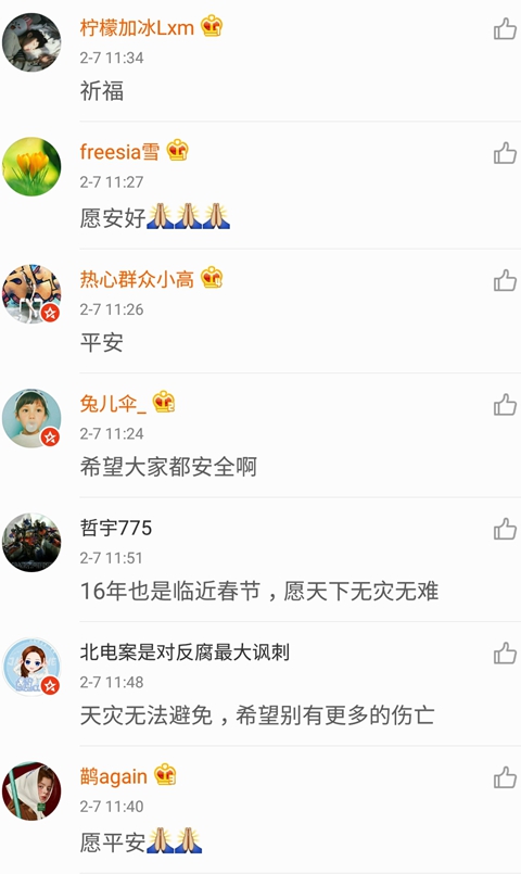 大陸網友紛紛為臺灣祈福。(圖片截取自新浪微博)