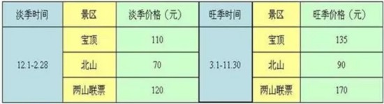 淡季:每年11月15日—次年1月15日,普通票:140元;優惠票:70元。