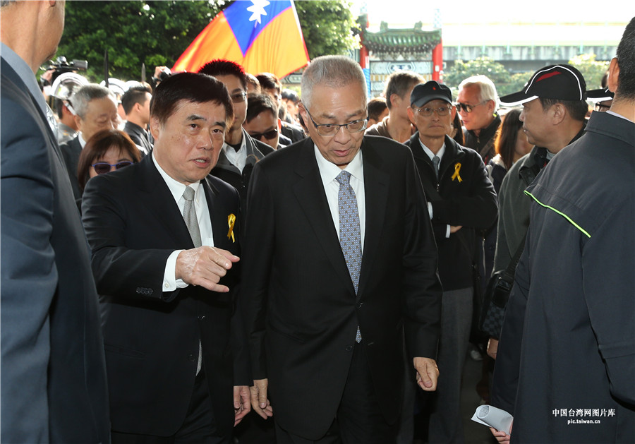 中國臺灣網(wǎng)3月23日訊 臺軍退役上校繆德生2月底在反軍人年改抗議中,因在“立法院”攀墻不慎跌落重傷不治,其家人于3月22日上午舉行告別儀式,中國國民黨主席吳敦義(中)、副主席郝龍斌(左)前往致祭。(來源:中國臺灣網(wǎng)圖片庫 攝影:林俊良)