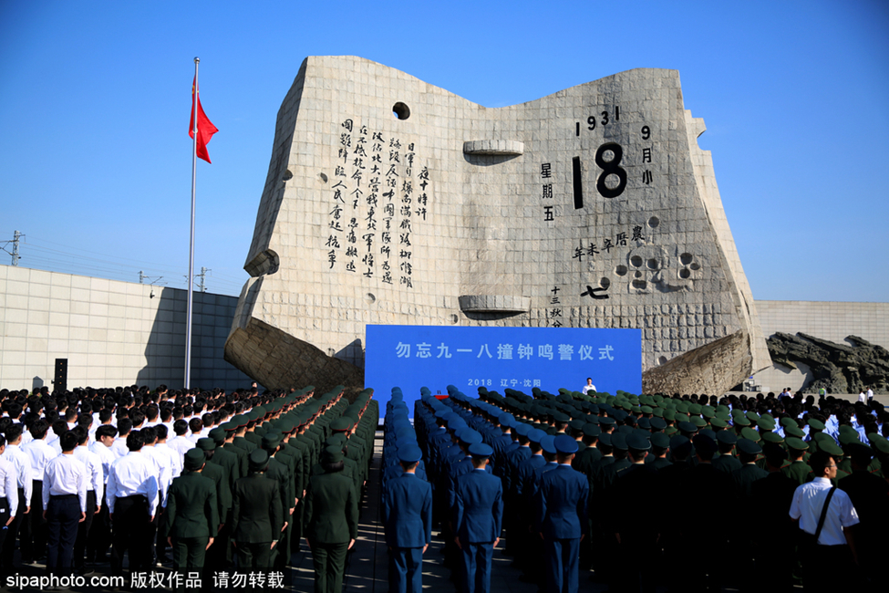 2018年9月18日,遼寧省沈陽市,上午9時18分,“勿忘九一八撞鐘嗚警儀式”在沈陽“九.一八”歷史博物館殘歷碑廣場舉行。撞響“警示鐘”十四響,嗚響警報三分,告誡世人一一勿忘國恥,銘記歷史!