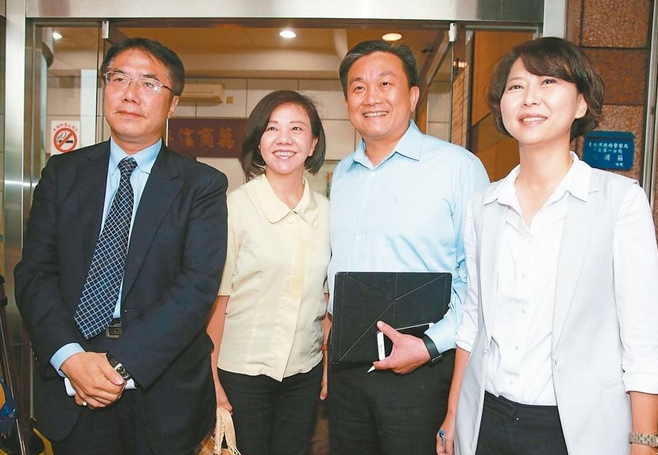 黃偉哲(左一)與陳亭妃(右一)是否出現新系與“正國會”的對決,引發關注。(圖片來源:臺灣《聯合報》)