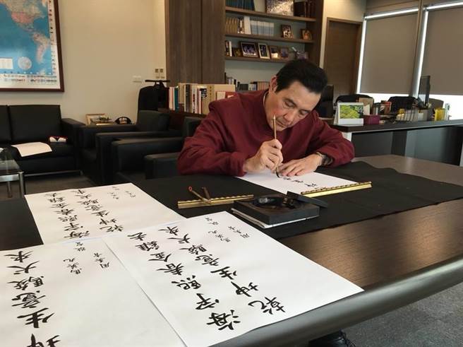 馬英九揮毫,親筆寫狗年春聯。(圖片來源:臺灣《中時電子報》)