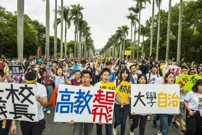 臺大師生4日在校園發起“新五四運動”,現場涌入數千名學生校友及聲援人士,高喊“大學自治、還我校長”等口號。(圖片來源:臺灣《中時電子報》)
