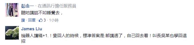 有不少網(wǎng)友直接表示“520蔡英文說鬼話”、“直播是在討罵的”、“聽她講話不如去睡覺”、“完全是沒內容的回答”、“聽siri還比較有趣”、“你會去看一個讀稿機器人?”;