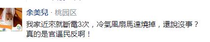 當然,對臺當局種種說辭不買賬的還有網(wǎng)友,“備用發(fā)電量夠還怎么可能跳電?”、“現(xiàn)在不缺電,但會一直跳電,有分別嗎?對百姓而言都是沒電”。