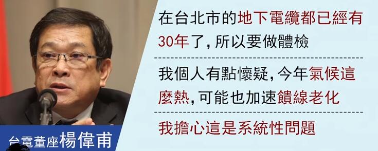 面對外界指責,臺電負責人先推說或是“饋線老化”造成,又說可能是“系統(tǒng)性問題”;“行政院長”賴清德也表態(tài),若是臺電有疏失那就要負責,不排除懲罰。